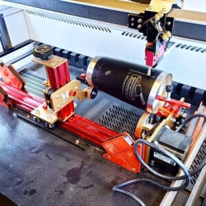 Rotary Attachment – a rotary attachment is optional and may not be necessary for your woodworking shop. However, if you are looking to diversify your product offerings, the addition of a rotary attachment can support working on materials such as coated tumblers or other cylindrical materials. The addition of a rotary attachment for your CO2 laser can unlock new possibilities for your business.